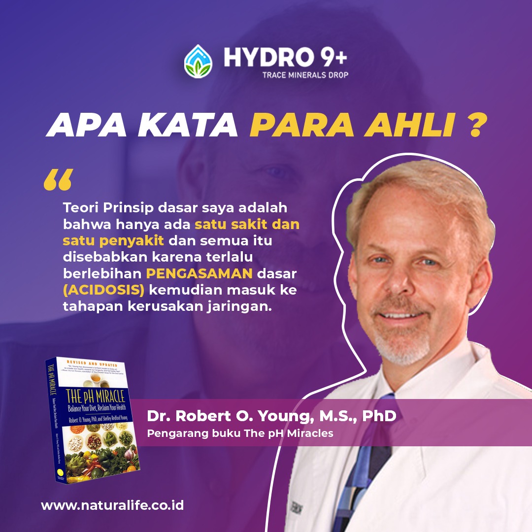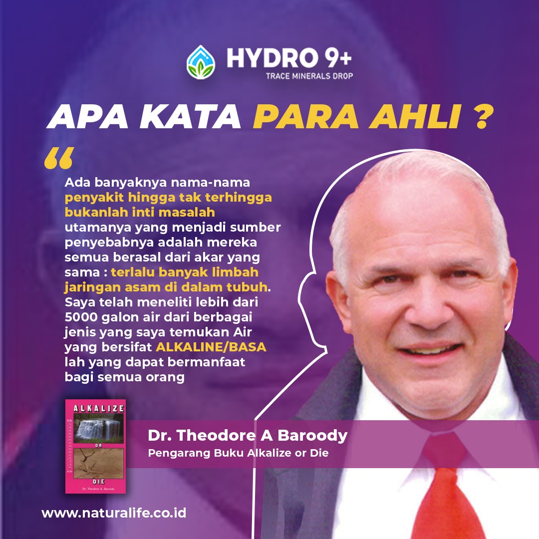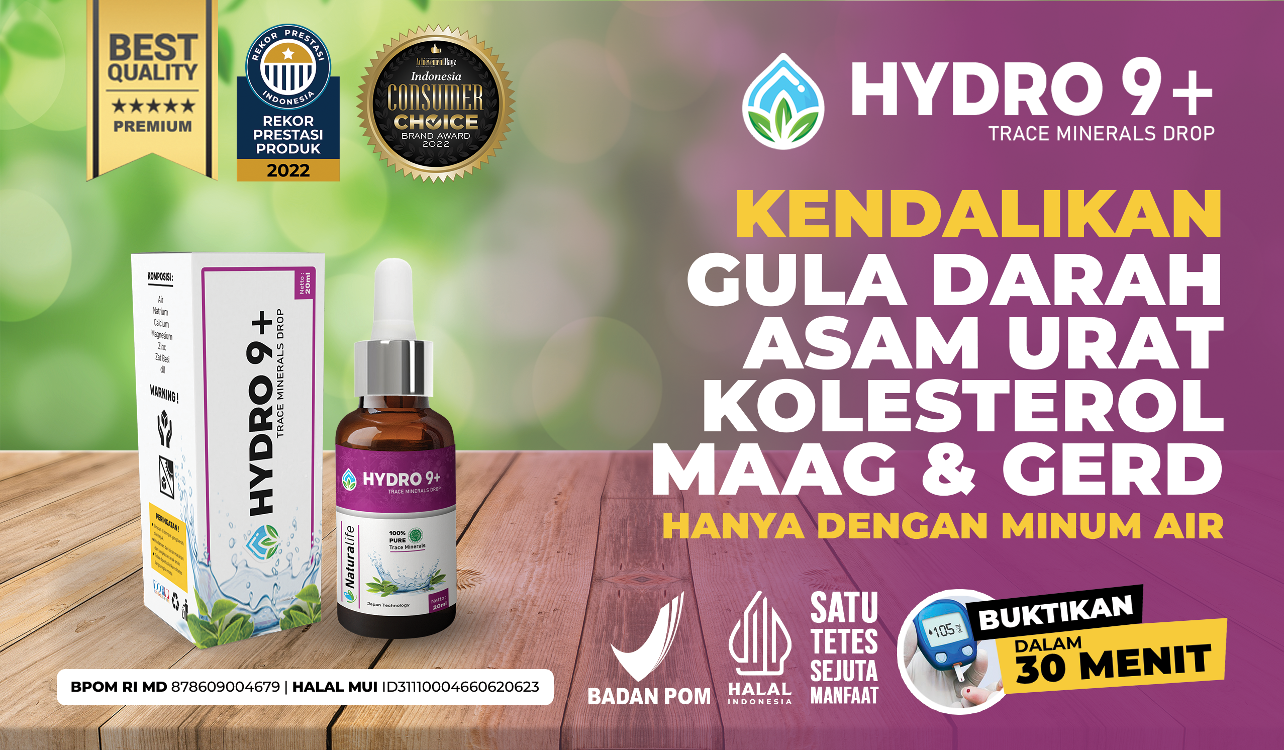 HYDRO9+ bukan obat. HYDRO9+ adalah Biang Alkali yang berbahan dasar alami Mineral ALKALI Grade A (Istimewa), Natrium, Calcium, Magnesium, Zinc, Zat Besi dll.